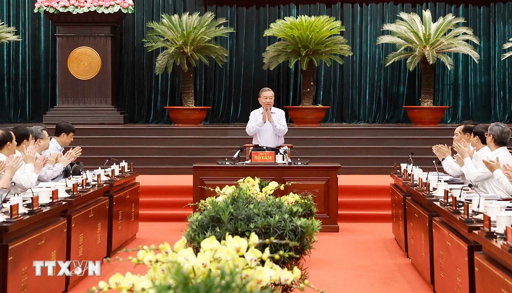 Tại buổi làm việc, sau khi nghe đại diện lãnh đạo TPHCM báo cáo và các ý kiến phát biểu trách nhiệm của các ban, bộ, ngành Trung ương, Tổng Bí thư, Chủ tịch nước Tô Lâm cơ bản thống nhất với nhiều nội dung đã được nêu, đồng thời đánh giá cao và biểu dương những nỗ lực lớn, tinh thần trách nhiệm và quyết tâm chính trị của Đảng bộ, chính quyền, quân và dân TPHCM.
