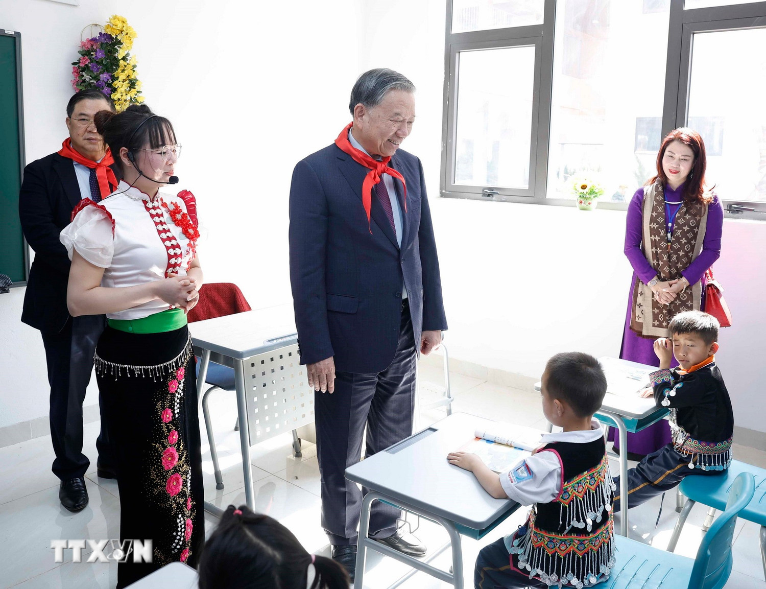 Tổng Bí thư Tô Lâm thăm lớp học của Trường Phổ thông nội trú liên cấp Tiểu học và Trung học Cơ sở Si Pa Phìn