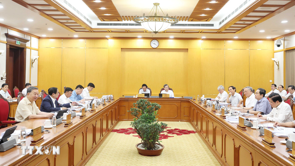 Ngày 4/7, tại Trụ sở Trung ương Đảng, Tổng Bí thư Tô Lâm chủ trì cuộc họp Bộ Chính trị, Ban Bí thư cho ý kiến về tình hình thực hiện Nghị quyết của Trung ương, Kết luận của Bộ Chính trị về sắp xếp tổ chức bộ máy và đơn vị hành chính; dự thảo báo cáo kết quả triển khai Nghị quyết số 18-NQ/TW ngày 25/10/2017 của Ban Chấp hành Trung ương Đảng khóa XII từ tháng 11/2024 đến tháng 7/2025.