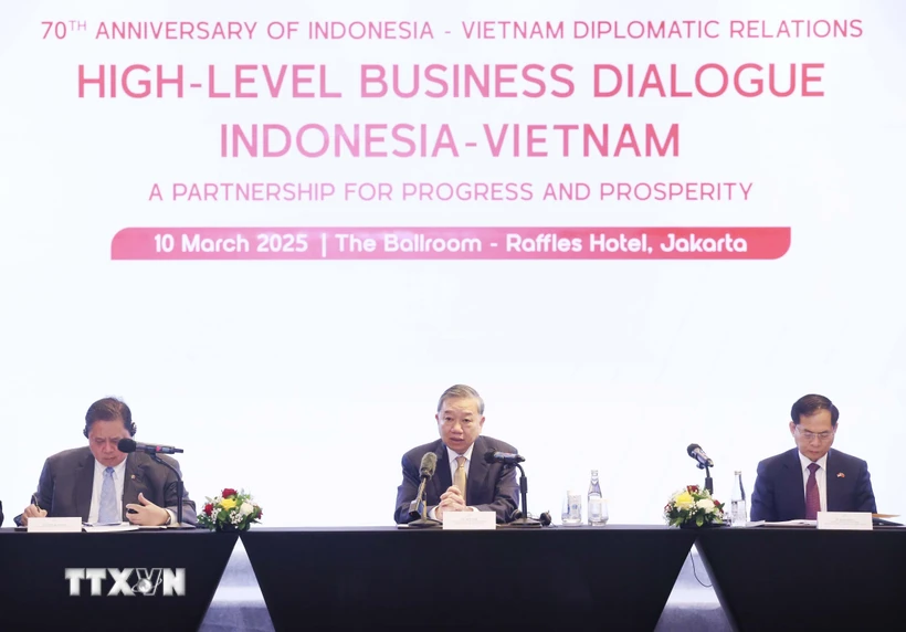 Trong khuôn khổ chuyến thăm cấp Nhà nước Indonesia, thăm chính thức Ban Thư ký ASEAN, sáng 10/3, tại Thủ đô Jakarta, Tổng Bí thư Tô Lâm đã dự tọa đàm doanh nghiệp “Việt Nam và Indonesia: Quan hệ đối tác vì sự tiến bộ và thịnh vượng” do Bộ Tài chính Việt Nam, Đại sứ quán Việt Nam tại Indonesia phối hợp với Hội hữu nghị Indonesia - Việt Nam và Tập đoàn Ciputra tổ chức, nhân kỷ niệm 70 năm thiết lập quan hệ ngoại giao Việt Nam - Indonesia.