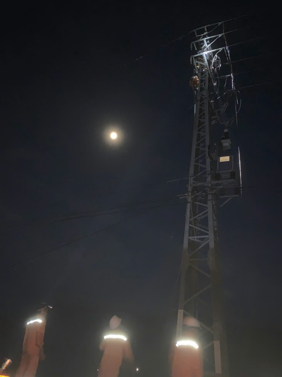 Công nhân điện lực miền Bắc làm việc xuyên đêm để khắc phục hậu quả bão số 10