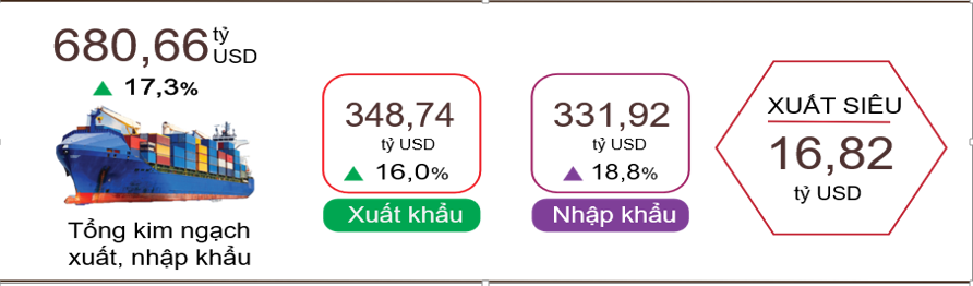 Cán cân thương mại hàng hóa 9 tháng ghi nhận xuất siêu 16,82 tỷ USD, mặc dù thấp hơn mức 21,15 tỷ USD của cùng kỳ năm trước nhưng vẫn là con số rất tích cực. Trong đó, khu vực kinh tế trong nước nhập siêu 20,26 tỷ USD, trong khi khu vực có vốn đầu tư nước ngoài (kể cả dầu thô) xuất siêu tới 37,08 tỷ USD.