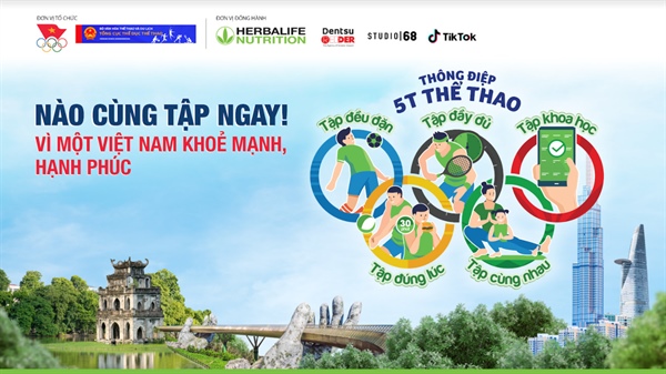 Mới đây, Tổng cục Thể dục thể thao (TDTT) phối hợp cùng Ủy ban Olympic Việt Nam triển khai dự án “Nào cùng tập ngay! Vì một Việt Nam khỏe mạnh và hạnh phúc”.
