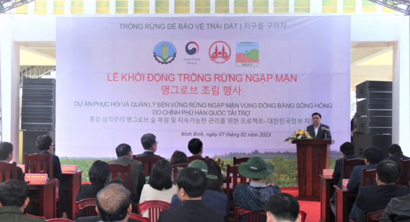 Tại buổi lễ, Thứ trưởng Bộ NN&PTNT Nguyễn Quốc Trị đánh giá cao và cảm ơn Cơ quan Lâm nghiệp Hàn Quốc đã quan tâm, hỗ trợ Việt Nam thực hiện dự án quan trọng này. Dịp này, lãnh đạo ngành nông nghiệp đề nghị Ban quản lý các dự án lâm nghiệp phối hợp chặt chẽ với Ban quản lý dự án các địa phương và các bên có liên quan tổ chức thực hiện dự án Phục hồi và quản lý bền vững rừng ngập mặn vùng đồng bằng sông Hồng với hiệu quả cao nhất và đảm bảo chất lượng, tiến độ và đáp ứng yêu cầu thực tiễn tại địa phương; quyết tâm hoàn thành việc trồng và phục hồi rừng ngay trong mùa trồng rừng năm 2023; triển khai các hoạt động phát triển sinh kế cho cộng đồng và tăng cường năng lực cho các cơ quan chức năng để nâng cao hiệu quả quản lý rừng.