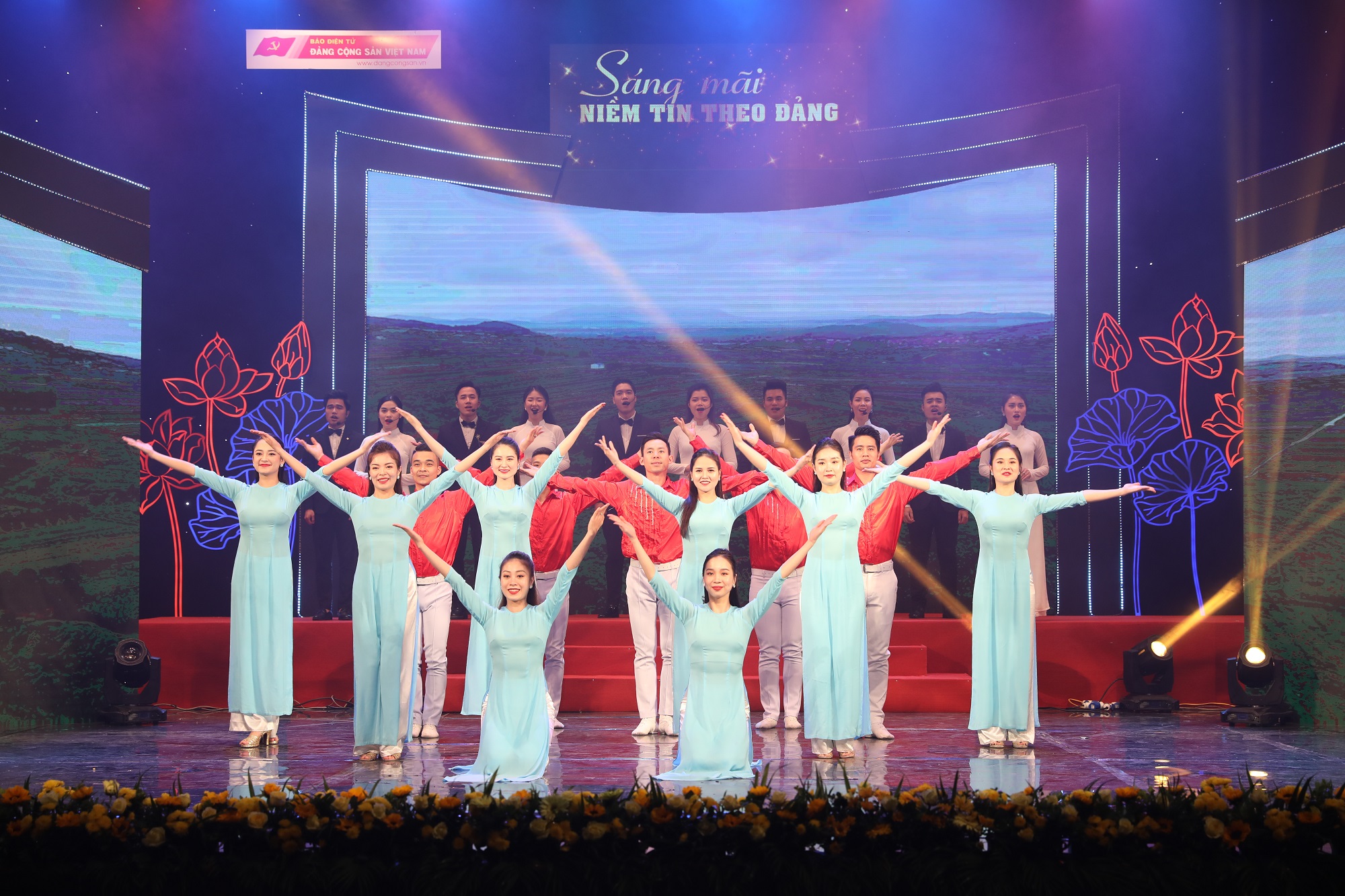 Với chủ đề "Sáng mãi niềm tin theo Đảng", chương trình nghệ thuật gồm các ca khúc: Niềm tin dâng Đảng, Màu cờ tôi yêu, Lá cờ, Tự nguyện, Đảng là cuộc sống của tôi, Tổ quốc vinh quang, Hát về anh, Hát mãi khúc quân hành, Em ơi mùa xuân đến rồi đó, Liên khúc Việt Nam ơi và Những trái tim Việt Nam… Các tiết mục nghệ thuật được thể hiện bởi các ca sỹ, nghệ sỹ âm nhạc hàng đầu, gạo cội của nền âm nhạc Việt Nam như: NSƯT Đăng Dương, ca sỹ Trọng Tấn, ca sỹ Lan Anh, ca sỹ Minh Quân, ca sỹ Thu Thủy, ca sỹ Hoàng Hồng Ngọc, ca sỹ Thành Lê, ca sỹ Mạnh Hường… đã mang tới khán giả thông điệp: hơn thập kỷ qua Đảng Cộng sản Việt Nam do bác Hồ kính yêu sáng lập và rèn luyện, lãnh đạo, đưa đất nước ta giành được thắng lợi vĩ đại, có ý nghĩa lịch sử. Đảng đã lãnh đạo toàn dân ta làm nên cuộc cách mạng lịch sử tháng 8 năm 1945, đưa dân tộc ta bước vào một kỷ nguyên mới - kỷ nguyên độc lập dân tộc gắn liền với chủ nghĩa xã hội.