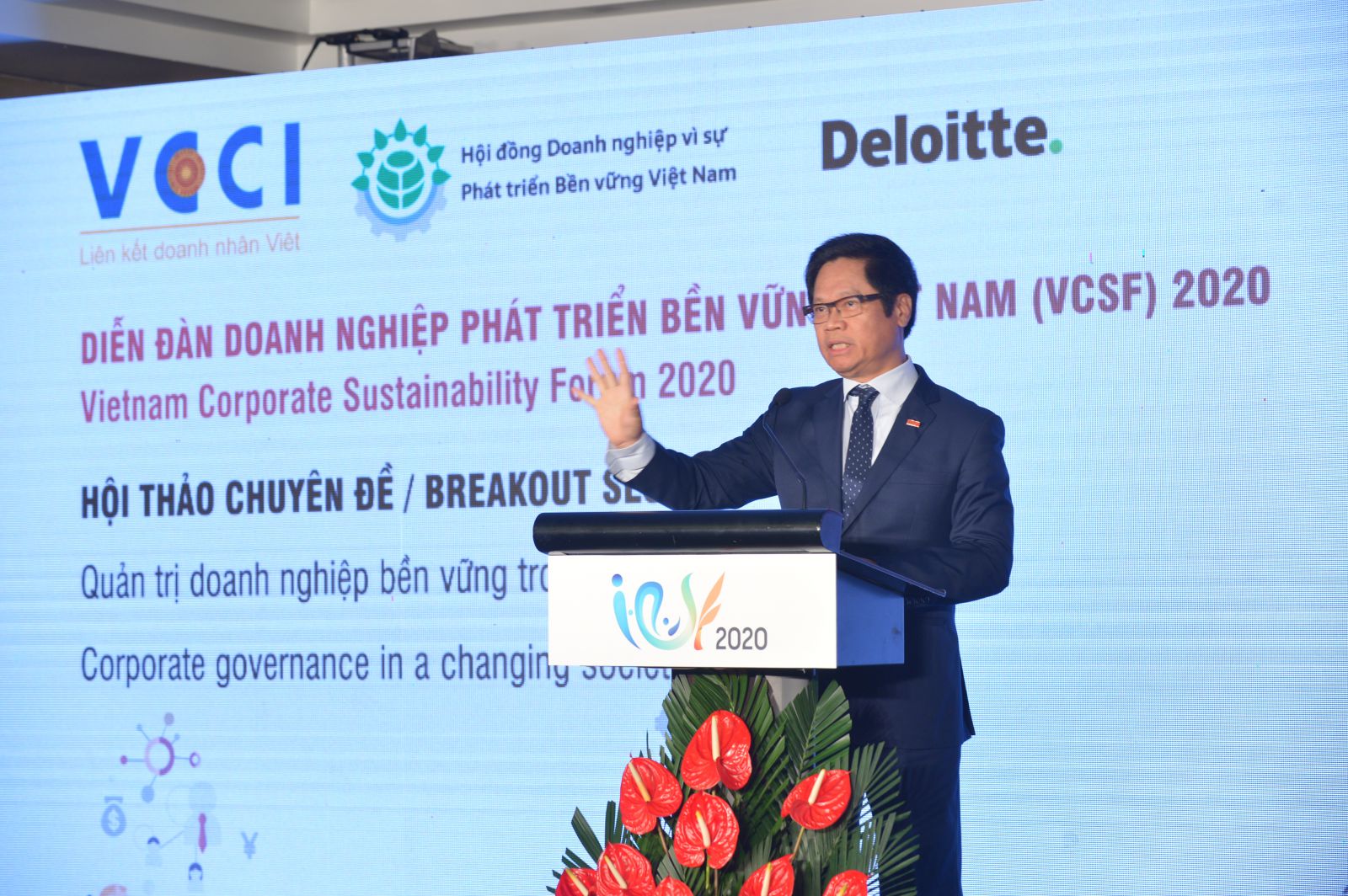 Phát biểu khai mạc Diễn đàn, TS. Vũ Tiến Lộc, Chủ tịch VCCI, Chủ tịch Hội đồng Doanh nghiệp vì sự phát triển bền vững Việt Nam (VBCSD) nhận định, trong giai đoạn 10 năm tới, Việt Nam sẽ tập trung vào 03 đột phá chiến lược: tiếp tục hoàn thiện và nâng cao chất lượng thể chế kinh tế thị trường định hướng XHCN; tiếp tục phát triển toàn diện nguồn nhân lực, khoa học, công nghệ, đổi mới sáng tạo; tiếp tục hoàn thiện hệ thống kết cấu hạ tầng kinh tế, xã hội đồng bộ, hiện đại.