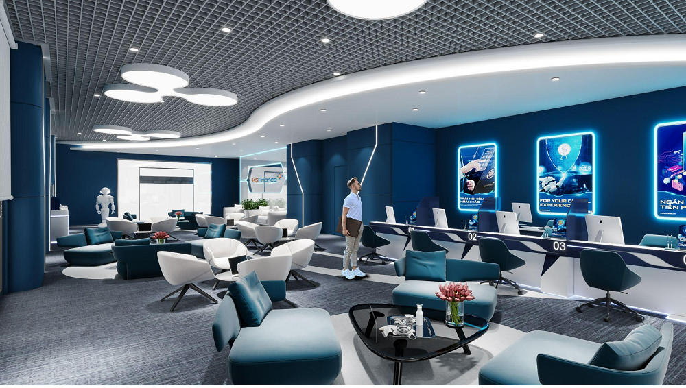 Về trực quan, hệ thống văn phòng kiểu mẫu của KSFinance gây ấn tượng mạnh mẽ khi được thiết kế theo mô hình không gian số 5 sao chuẩn quốc tế. Đột phá trong thiết kế, các không gian văn phòng được bố trí tương đương các sảnh lounge khách sạn hạng sang thay thế cho quầy giao dịch truyền thống. Các ứng dụng công nghệ hiện đại như sinh trắc học, nhận diện khuôn mặt (Face ID), công nghệ phân tích hình ảnh... giúp mọi giao dịch của khách hàng trở nên thuận tiện và đảm bảo an toàn, bảo mật tuyệt đối.