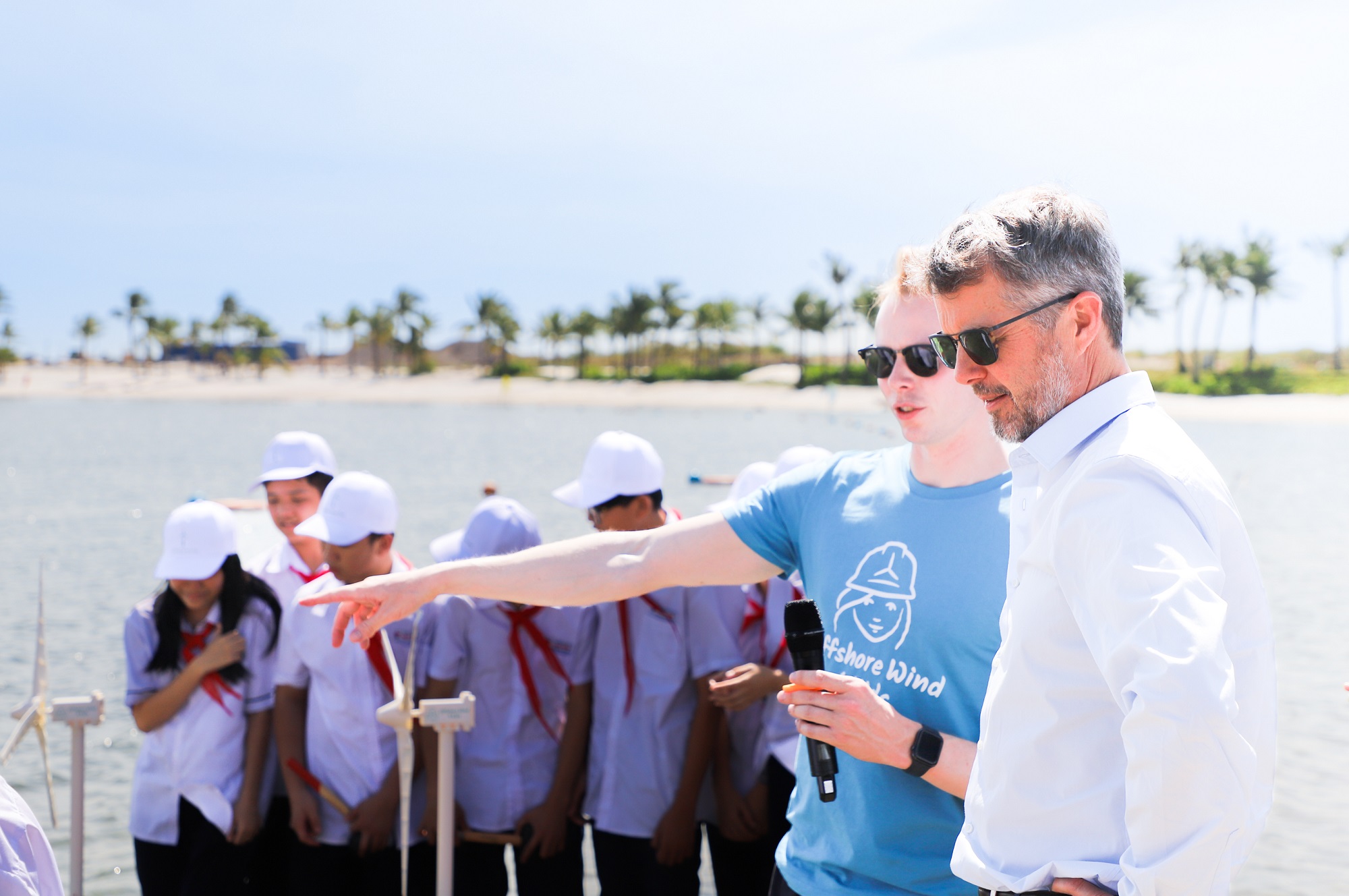 Thái tử kế vị Đan Mạch (áo trắng) tham dự sự kiện Điện gió ngoài khơi dành cho trẻ em tại Hải Phòng