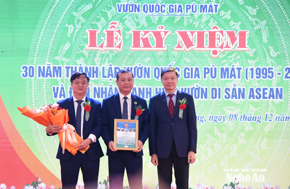 Lãnh đạo vườn quốc gia Pù Mát đón nhận bằng công nhận Vườn di sản ASEAN