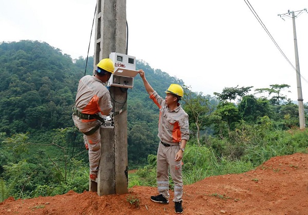 Công nhân Điện lực Võ Nhai kiểm tra công tơ cho các hộ dân